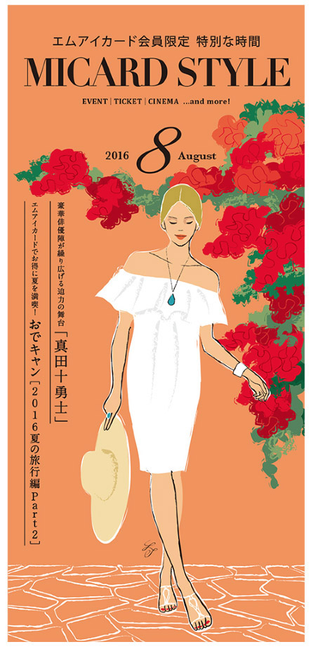 Works 投稿者:yooco 投稿公開日:2016年7月25日 投稿カテゴリー:works 投稿コメント:0件のコメント 三越伊勢丹カード会員情報誌 “MICARD STYLE”最新号。 白石の中庭に色鮮やかに咲き誇る ブーゲンビリアの花を描きました。 旅先の風景の中でも記憶に残る花、 ブーゲンビリア。 建物のアーチや塀や壁のあちこちに 枝づるいっぱい溢れんばかりに咲いていて 目が覚めるような美しさは なんともドラマティック! その鮮烈で魅惑的な姿の通り、 ブーゲンビリアの花言葉は Passion 情熱ー。 おすすめ 伊勢丹メンズ×ピッティ86 開催中 2015年2月11日 WORKS 2016年10月20日 Works 2015年2月20日 コメントを残す コメントをキャンセルコメントEnter your name or username to comment Enter your email address to comment Enter your website URL (optional) 次回のコメントで使用するためブラウザーに自分の名前、メールアドレス、サイトを保存する。
